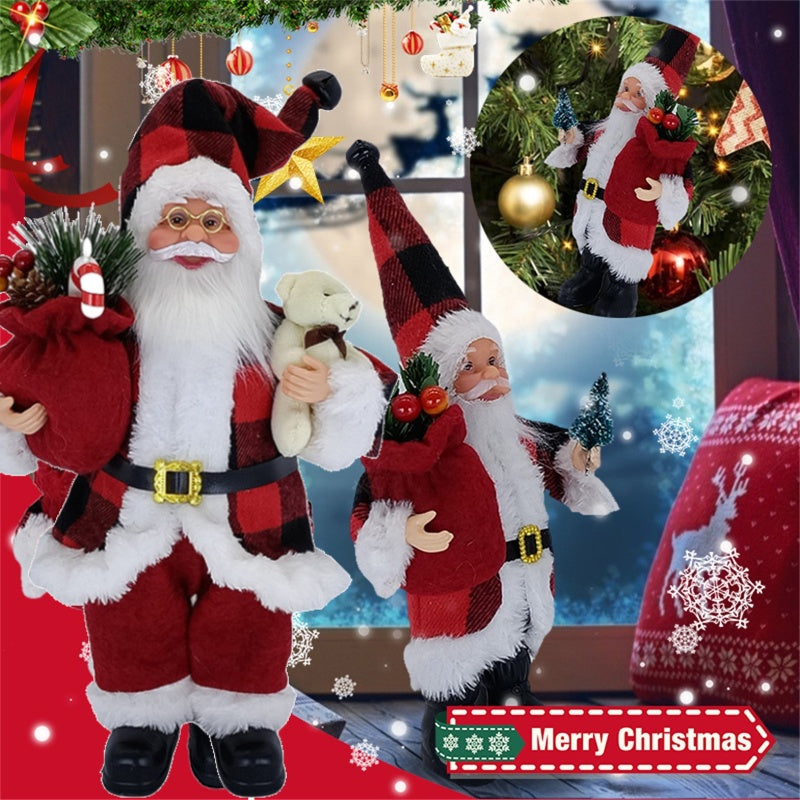 Os bonecos do Papai Noel decorativos interessantes, bonecas Papai Noel, ficam em bonecas decorativas interessantes, material de festa, presentes e brinquedos.